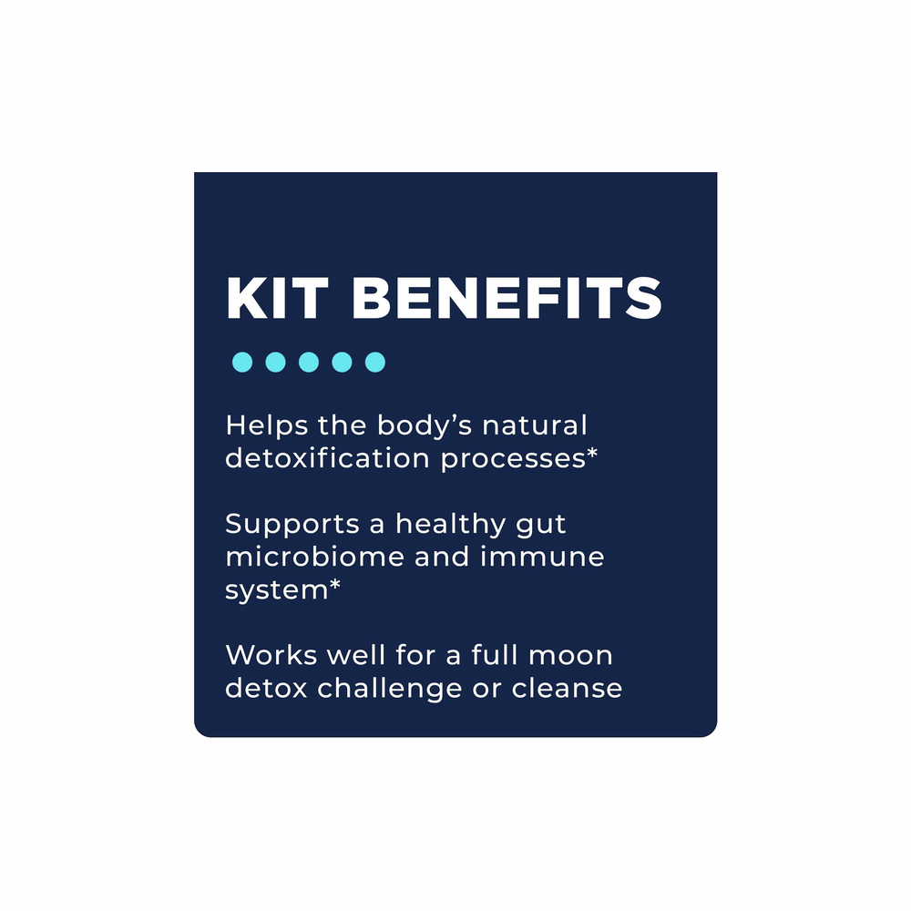 The supplements in this kit provide key herbs and nutrients to support the body’s natural ability to detoxify during a full moon, including Mimosa pudica seed, amla fruit, black walnut hull, clove bud, holy basil, neem. These ingredients also lend increased support to digestion, the immune system, and the gut microbiome.