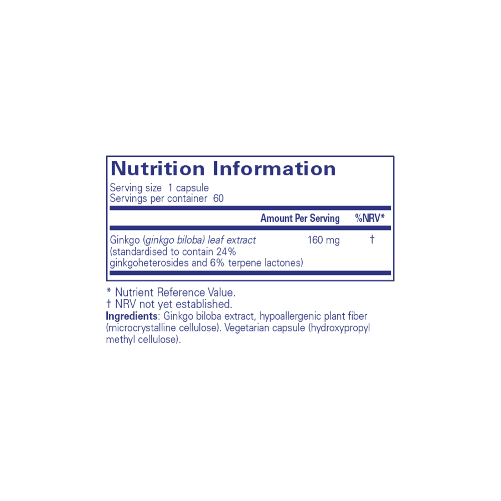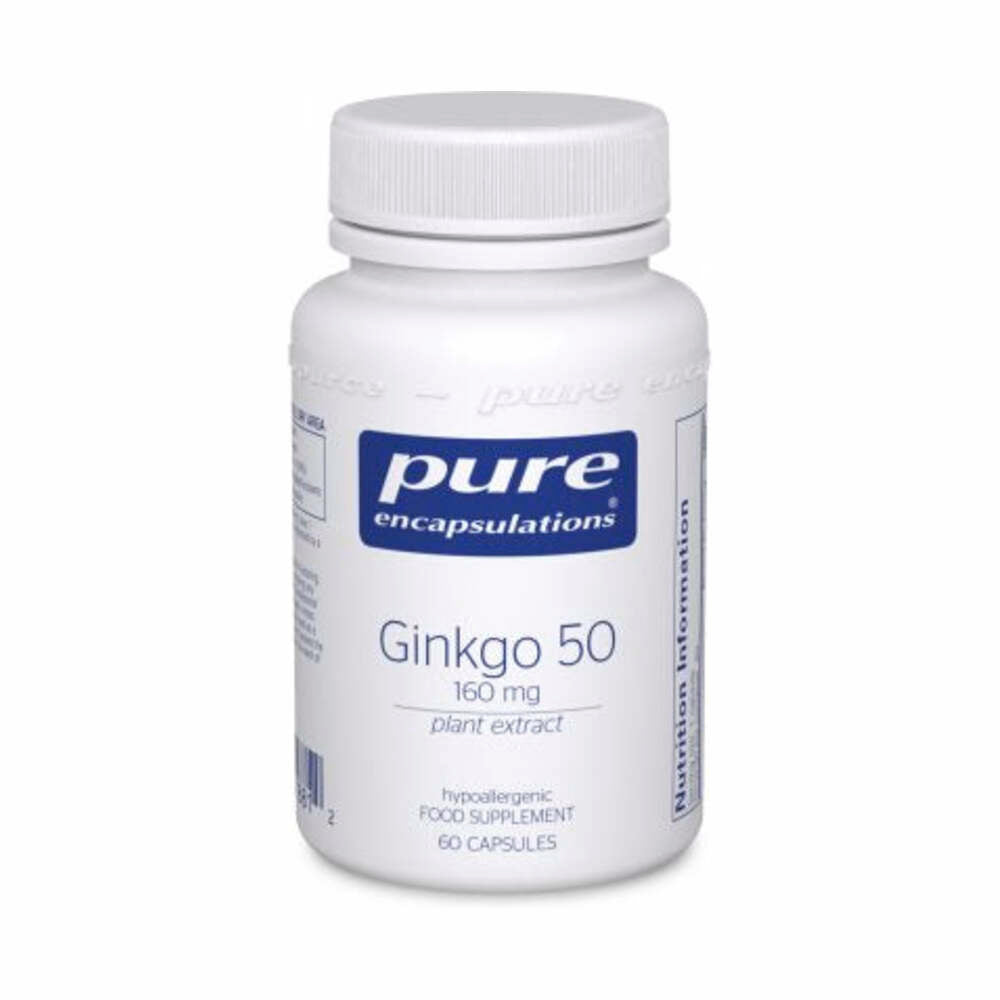 Ginkgo 50 160 mg is high quality plant extract providing guaranteed levels of active phytonutrients. Pure Encapsulations ginkgo leaf extract is standardized to contain 24% ginkgoheterosides and 6% terpene lactones.