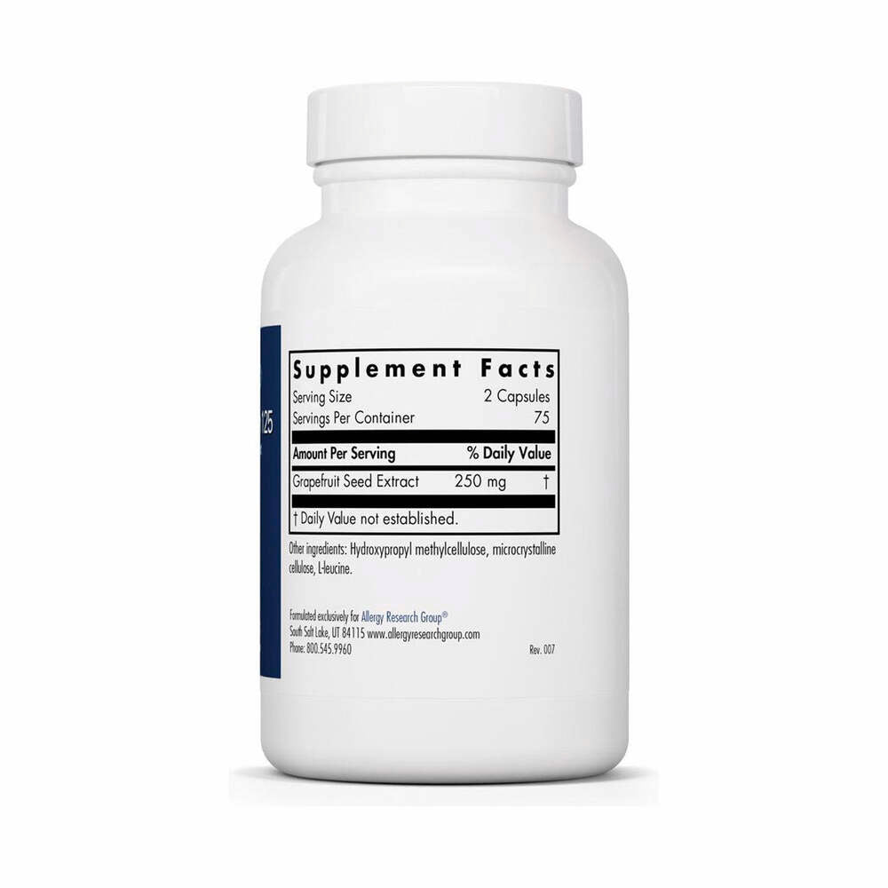 Each capsule supplies 125mg of Grapefruit Seed Extract (GSE). GSE contains potent compounds that can kill many tens of different types of bacteria & yeasts.