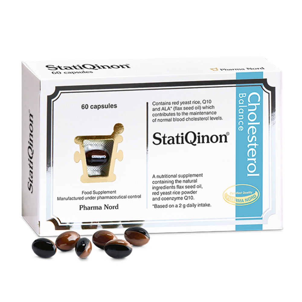 StatiQinon from Pharma Nord contains co-enzyme Q10, red yeast rice, and ALA (alpha-linolenic acid).
