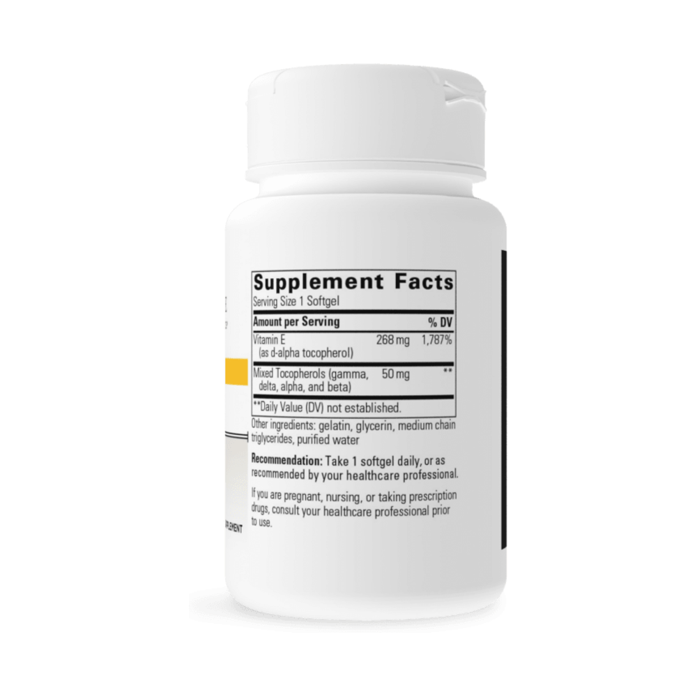 The vitamin E family is made up of different compounds called tocopherols including alpha, gamma, beta, and delta. These components work together and must all be present to be optimally utilized by the body. Our Vitamin E formula was developed to provide the full range of tocopherols necessary to support cardiovascular health.